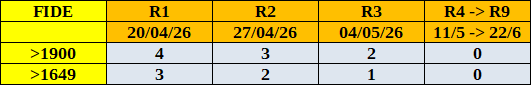 TOURNOIS FERMÉS FIDE du PRINTEMPS-LUNDI 2026